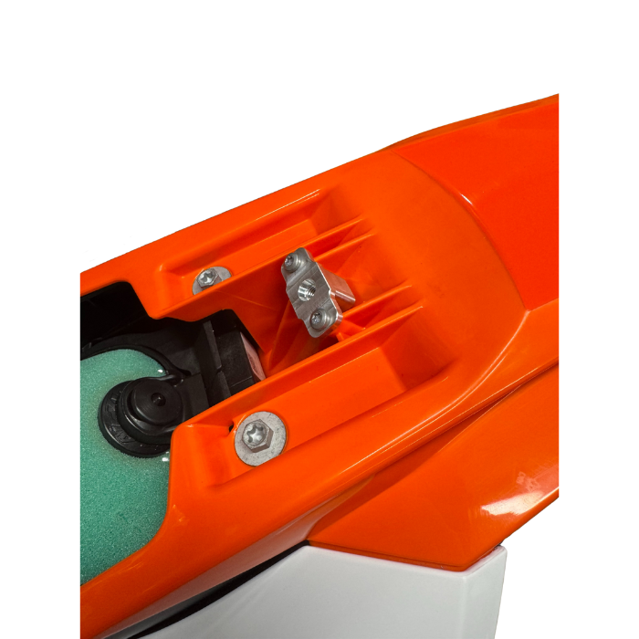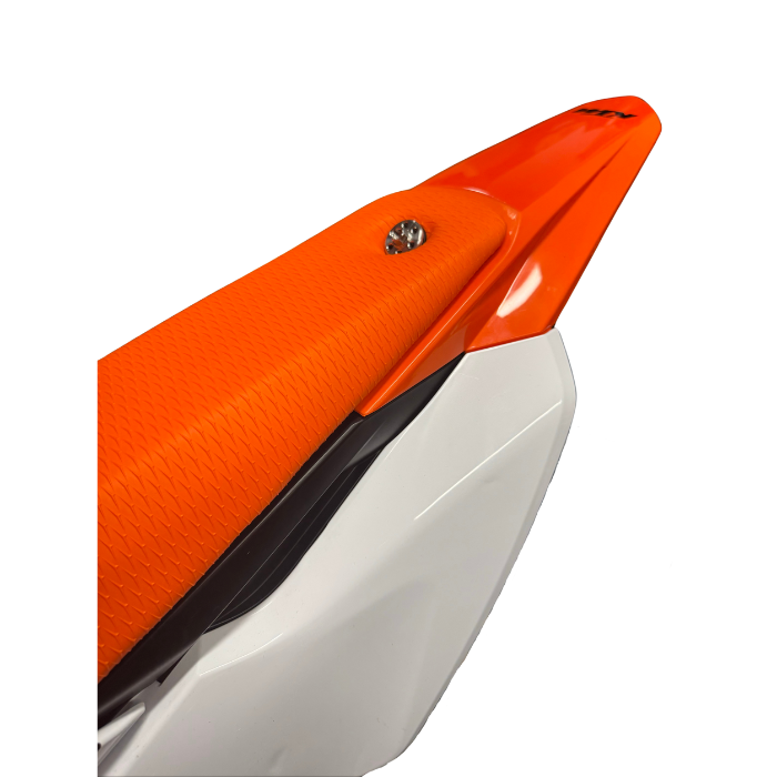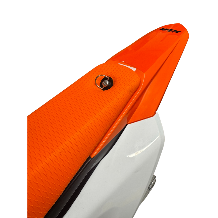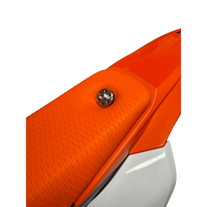 We have designed and manufactured this innovative, high-end seat bolt fastening system for KTM, Husqvarna, and GASGAS 50cc and 65cc models from 2009–2026. Featuring a unique all-in-one bolt and washer design, the drilled washer and dished bolt head make this a true one-off solution.