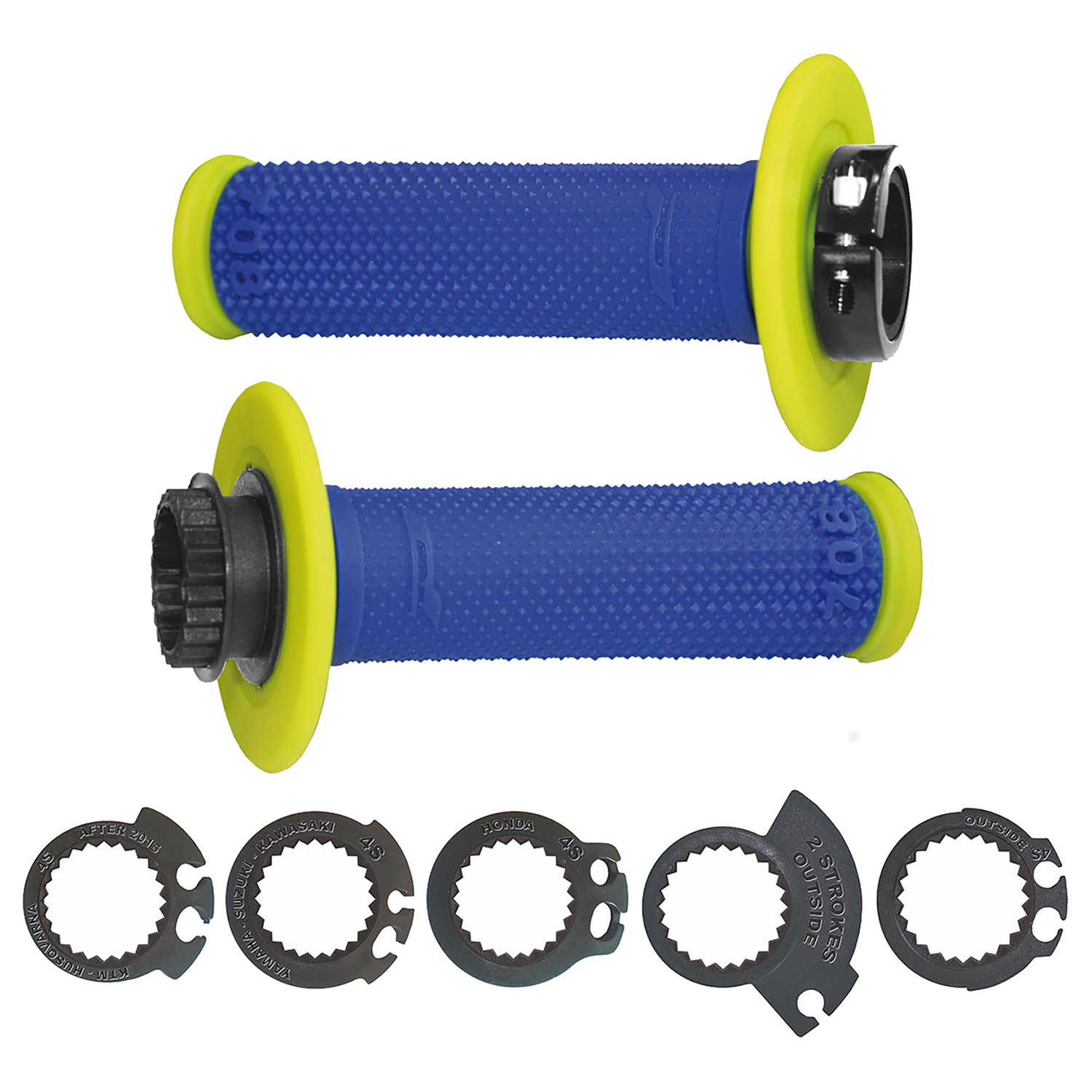 PRO GRIP 708 DUAL DENSITY FULL DIAMOND LOCK ON GRIPS FLO YELLOW/BLUE