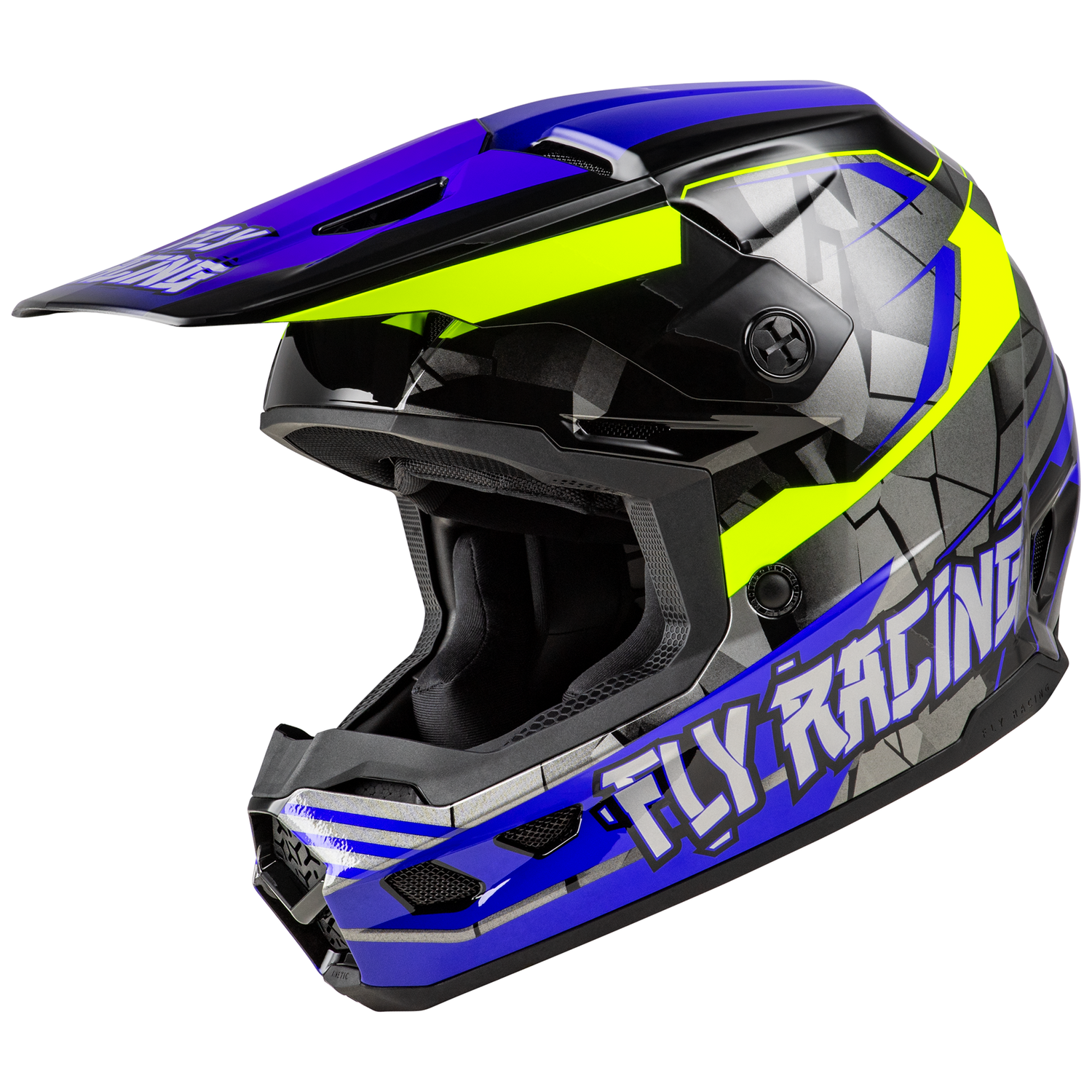 Fly Racing 2025 Youth Kinetic Scorched Helmet (Blue/Grey/Hi-Viz)