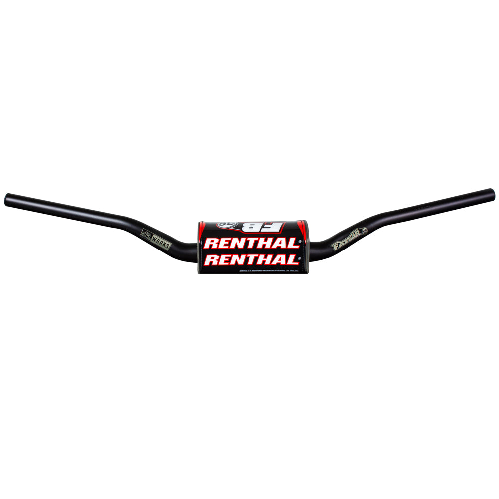The championship proven Renthal® Fatbar® continues to set the industry standard in an unbraced tapered mx handlebar. The oversized (1-1/8in | 28.6mm) clamping diameter uses computer aided profiling, tapering down to (7/8in | 22.2mm) to accept standard controls. Engineered from Renthal's exclusive 7010 T6 aluminum, specially formulated to reduce vibration and provide superior strength. The Renthal MX Fatbar provides that signature flex character desired by many top atheltes around the globe and is fitted as OE equipment by Honda, Kawasaki and Suzuki.