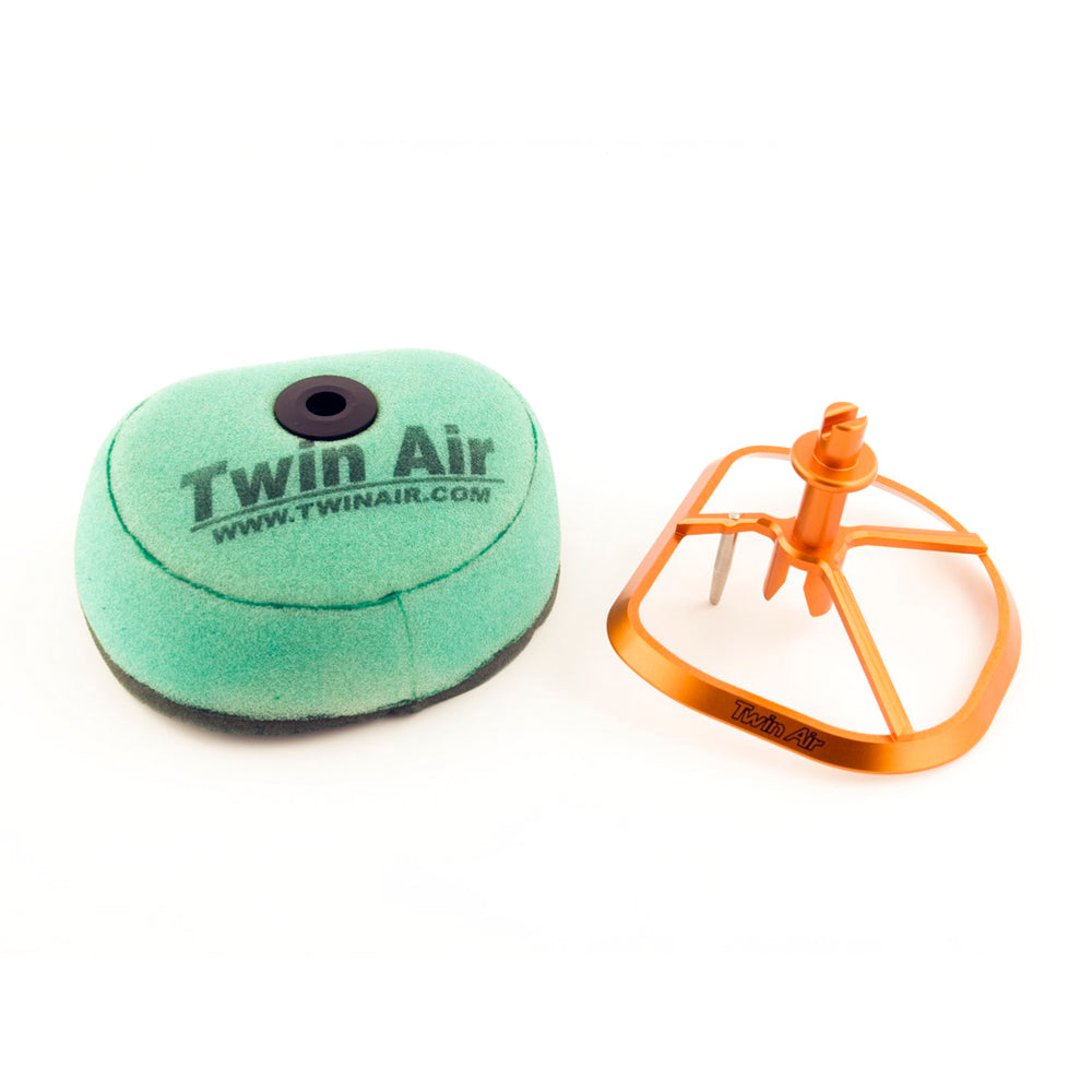 The best filter in the world can't do its job if there are leaks in the seal of the airbox. That's why Twin Air provides a complete line of products to ensure a leak-proof, fool-proof fit. Twin Air's Power Flow kit comes with a rigid, lightweight, billet aluminium cage that provides a tight seal to the airbox and replaces your flimsy plastic stock cage. Includes a Fire-resistant Twin Air Filter.