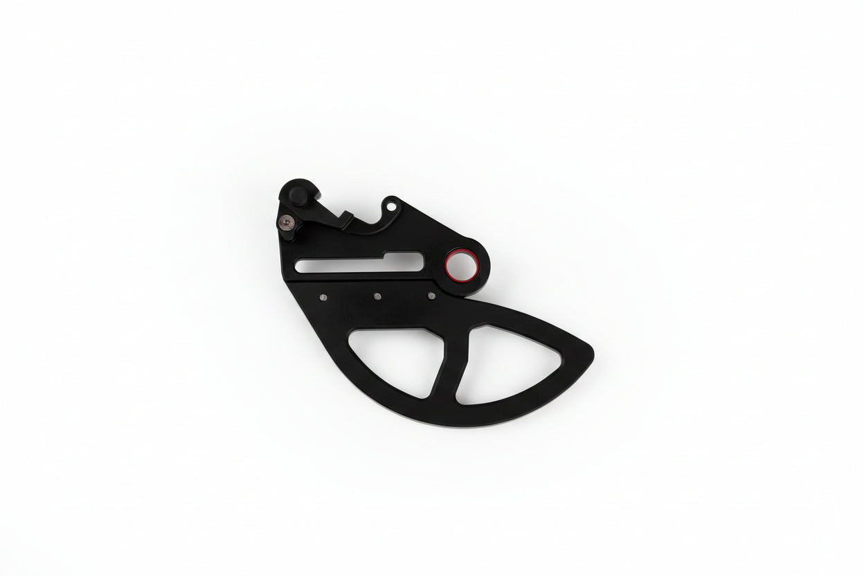 Machined from Aerospace-grade 6013-T6 aluminium, this disc guard provides exceptional durability and protection while remaining lightweight. Each one is black anodized for corrosion resistance and laser engraved for a high-quality finish.