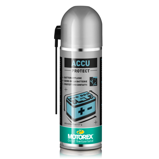 MOTOREX ACCU PROTECT SPRAY protects battery terminal posts, pole terminals, connectors, starter cables and connecting cables.
